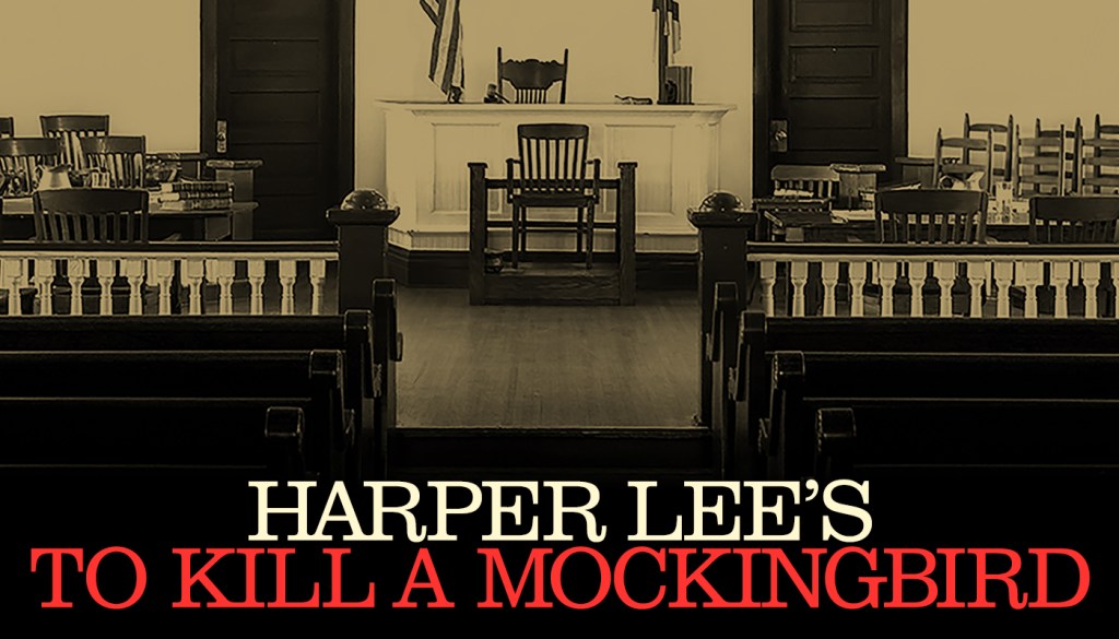 In the opening scenes, an adult Scout stood in the middle of the Maycomb County court room of her memory. As the judge, bailiff, lawyers, plaintiff, defendant, and spectators took their places, Scout began a rousing monologue about the phrase which begins every trial.