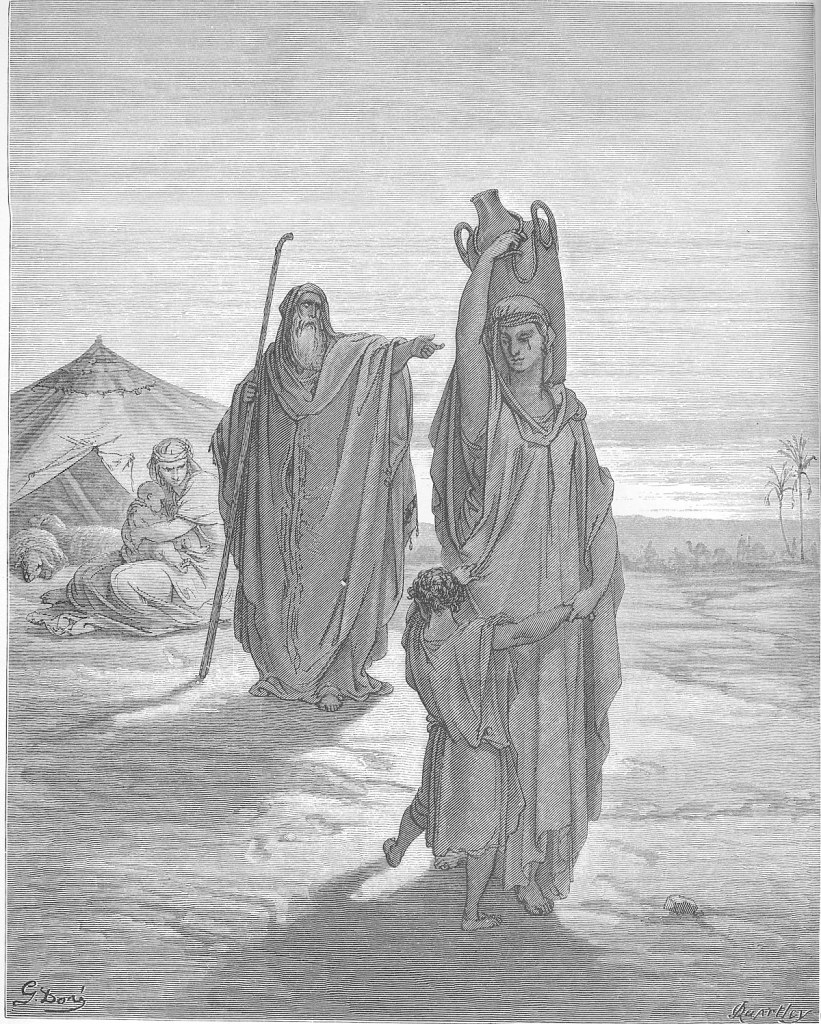 Back to 21, Sarah tells Abraham to cast Hagar and Ishmael out because Ishmael is no longer necessary to Sarah’s interpretation of God’s plan now that she has Isaac.