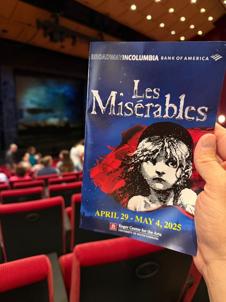 Case and I were in Columbia yesterday to see our all-time favorite musical: Les Mis. While God did not see fit to give me the ability to carry a tune or sing consistently in any recognizable key, he did give me the gift of an opinion. I am a Les Mis aficionado, a connoisseur of the musical, a devotee of 24601. Here are my “nerd” credentials:
